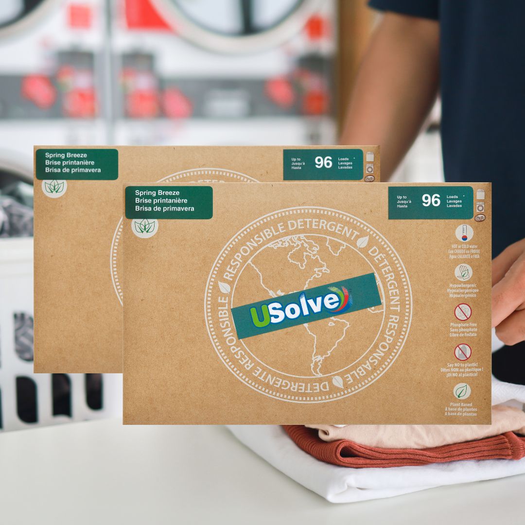 Zéro plastique, 100% biodégradable, ingrédients d'origine végétale ; les bandelettes de lessive USolve sont pré-dosées pour nettoyer le linge sale de manière pratique, efficace et naturelle.